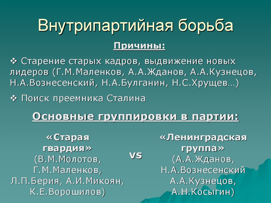 лидеров (Г.М.Маленков, А.А.Жданов, А.А.Кузнецов,