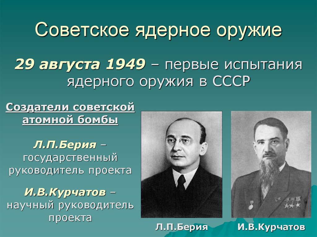29 августа 1949 – первые испытанияядерного оружия в СССР