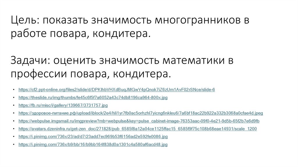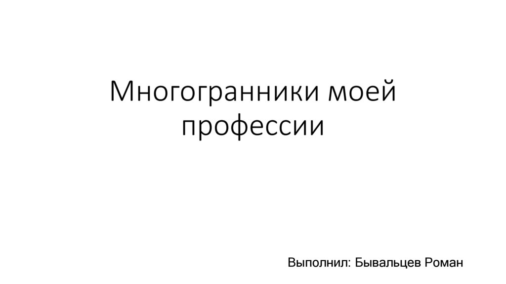 Выполнил: Бывальцев Роман2. Цель: показать значимость многогранников в работе повара, кондитера. Задачи: оценить значимость математики в профессии повара,