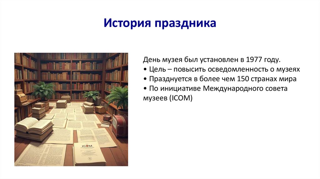 История праздникаДень музея был установлен в 1977 году.