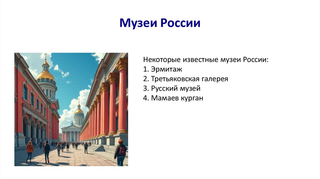 Музеи РоссииНекоторые известные музеи России: