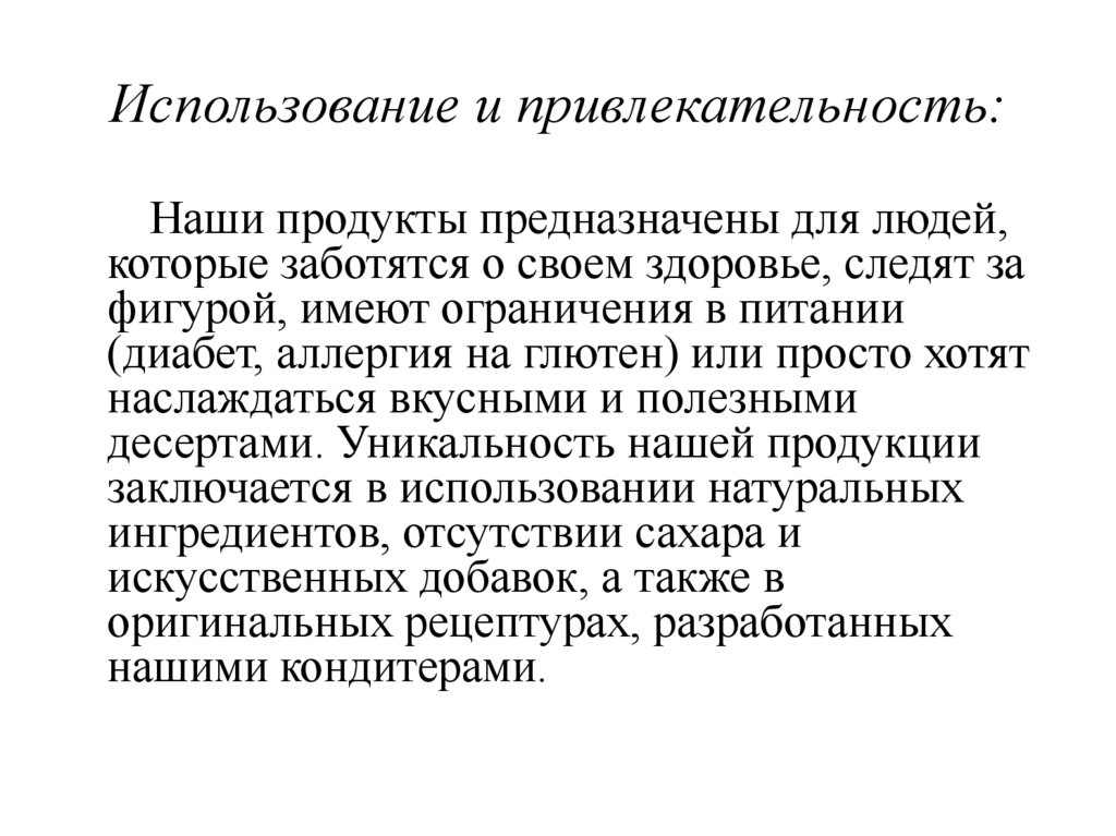«Здоровая кондитерская» -это проект по созданию уникального заведения,предлагающего альтернативу традиционным кондитерским изделиям,