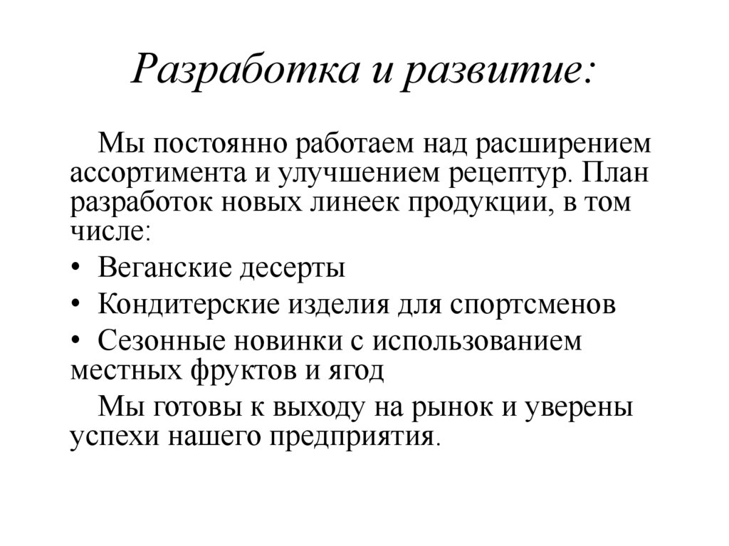 Мы постоянно работаем над расширениемассортимента и улучшением рецептур. План