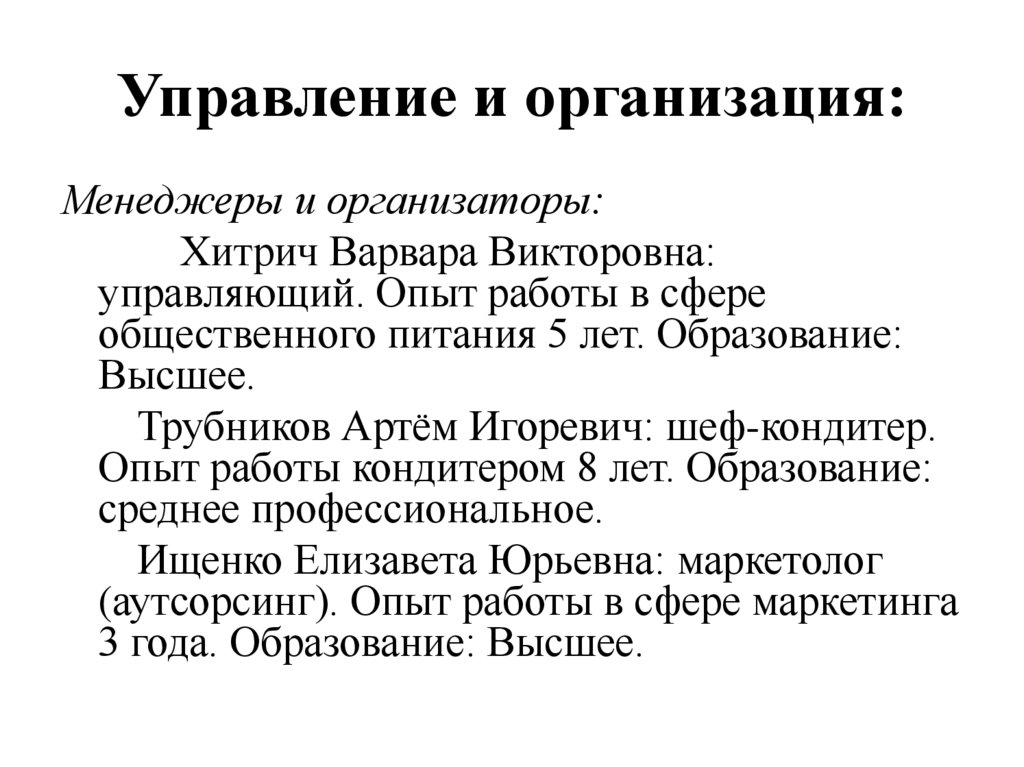 Менеджеры и организаторы:Хитрич Варвара Викторовна: