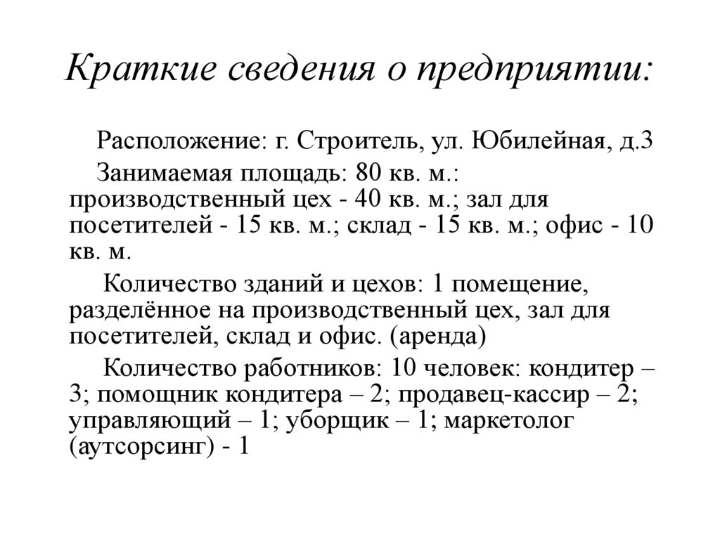 кондитерской», анализ рынка, маркетинговую стратегию, производственный