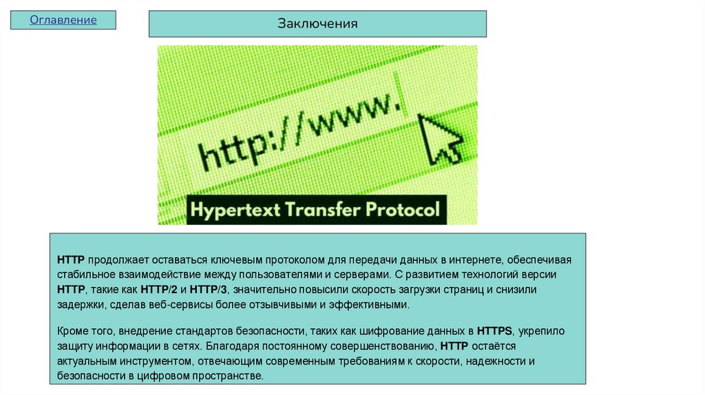 защиту информации в сетях. Благодаря постоянному совершенствованию, HTTP остаётся