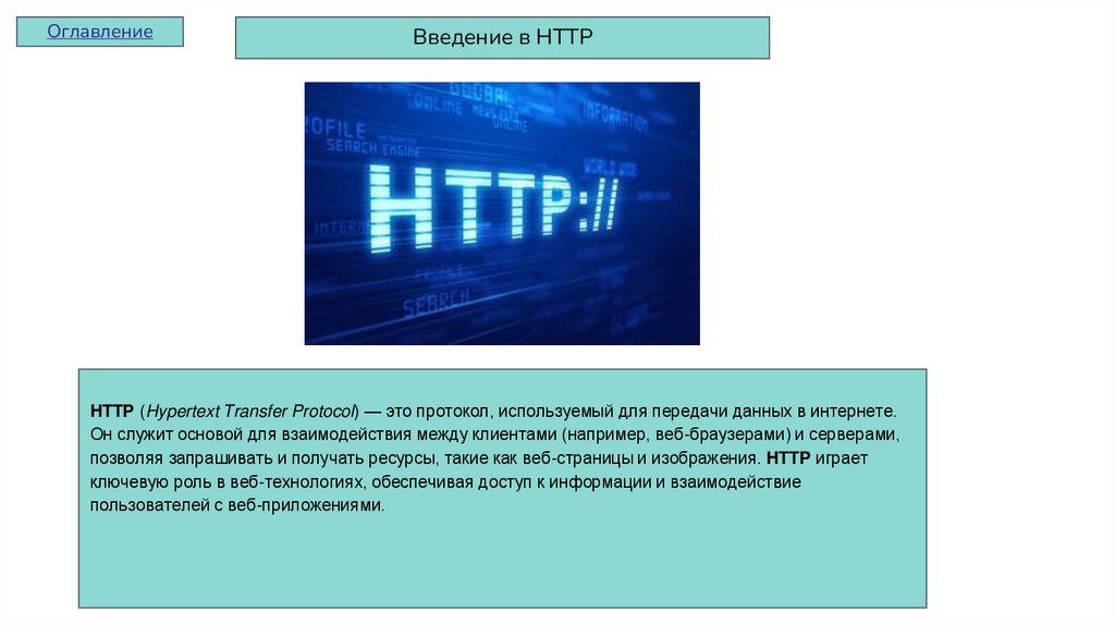 Он служит основой для взаимодействия между клиентами (например, веб-браузерами) и серверами,