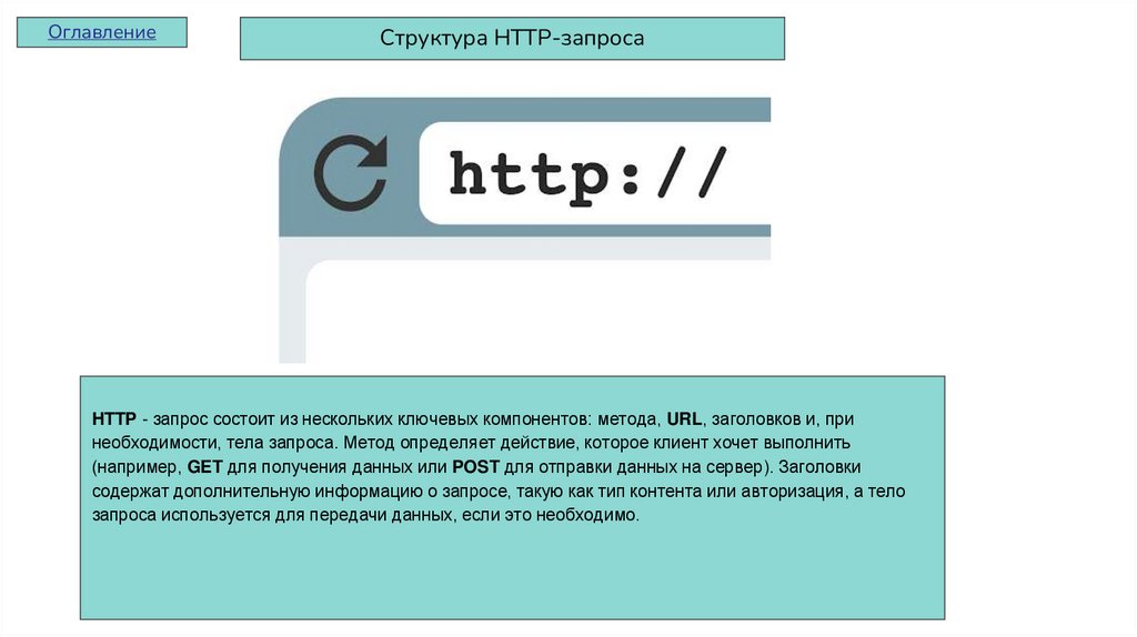 (например, GET для получения данных или POST для отправки данных на сервер). Заголовки