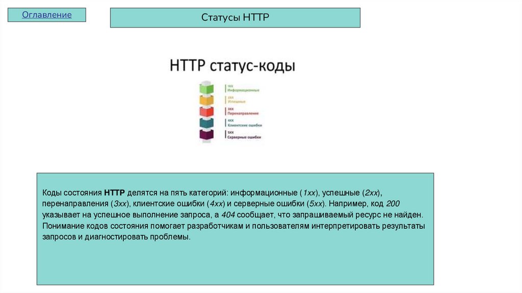Коды состояния HTTP делятся на пять категорий: информационные (1xx), успешные (2xx),