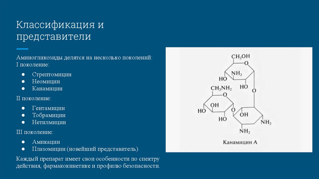 представители: неомицин, канамицин, гентамицин, тобрамицин, амикацин