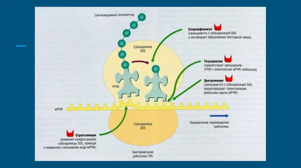 связываясь с 30S-субъединицей рибосомы. Это приводит к ошибкам при