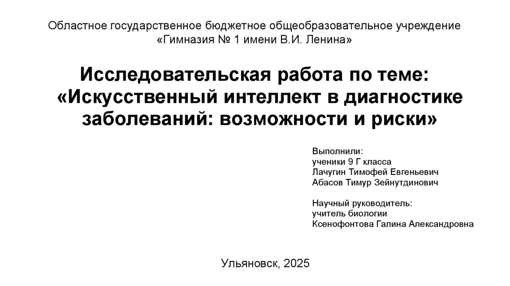 Исследовательская работа по теме: «Искусственный интеллект в диагностике заболеваний: возможности и риски»