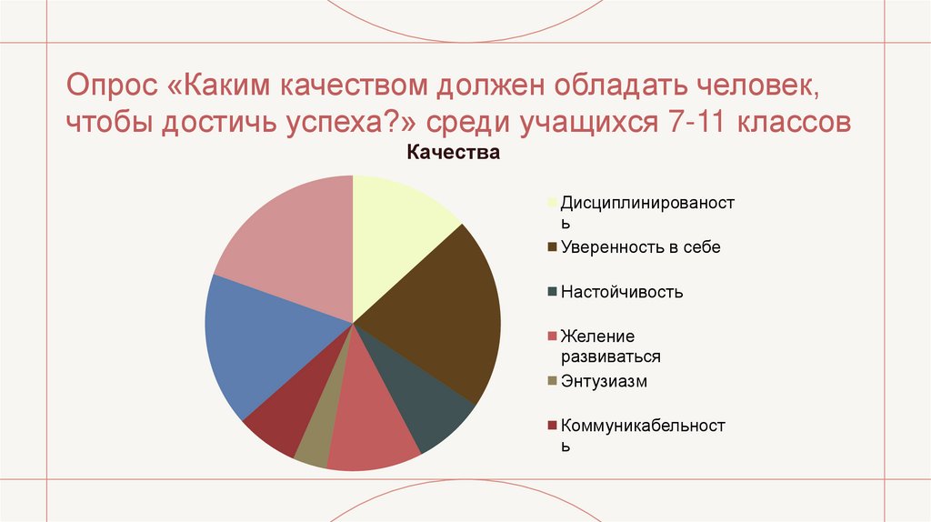 15. Опрос «Каким качеством должен обладать человек, чтобы достичь успеха?» среди учащихся 7-11 классов