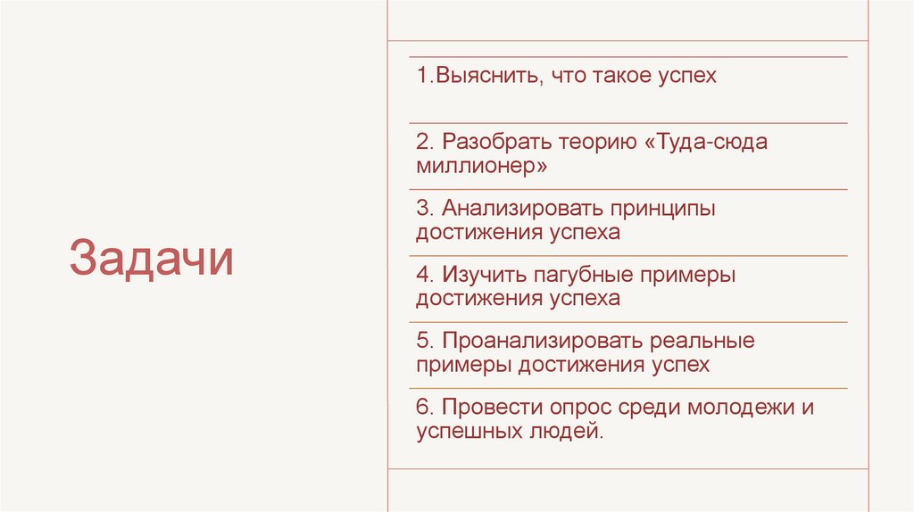 1.Выяснить, что такое успех2. Разобрать теорию «Туда-сюда