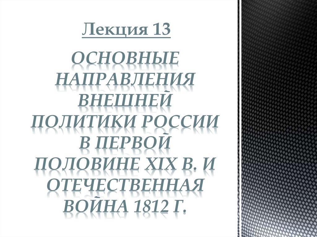 Основные направления внешней политики России в первой половине XIX в. и Отечественная война 1812 г. (Лекция 13)