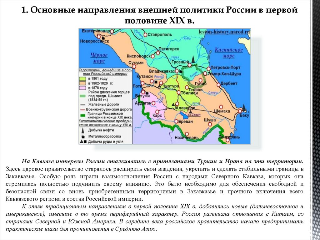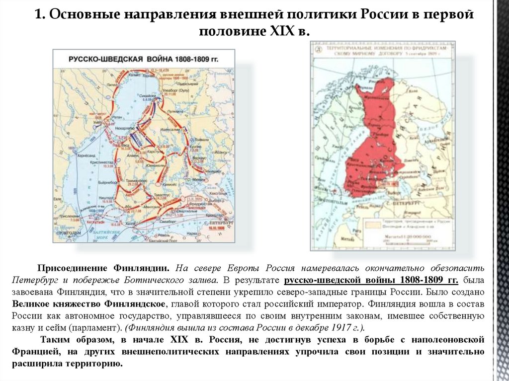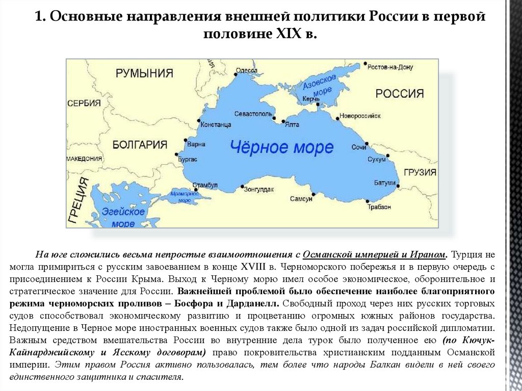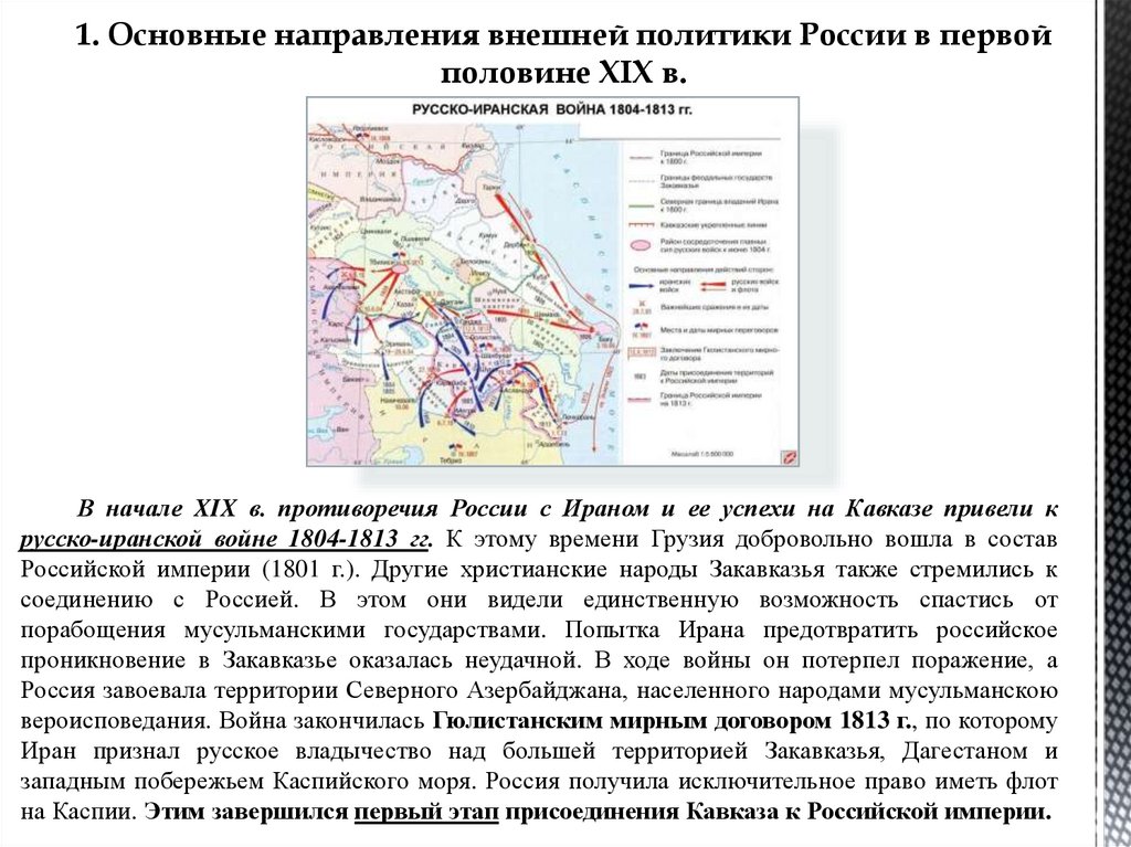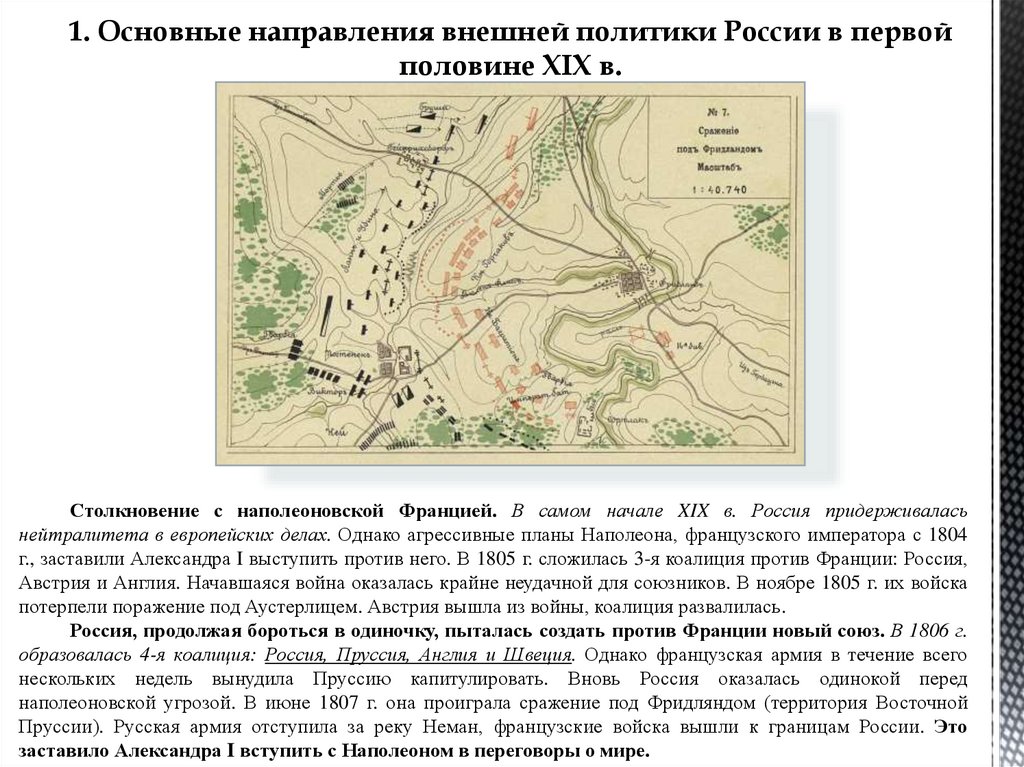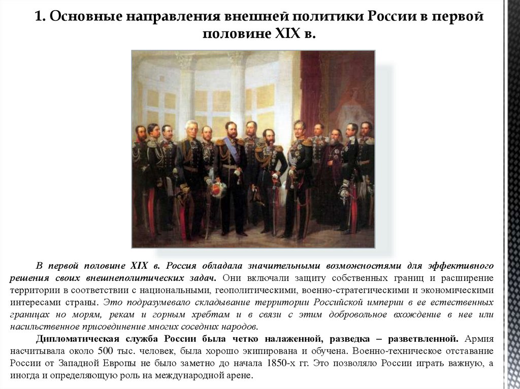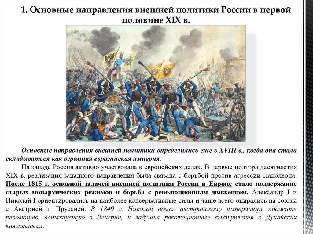 1. Основные направления внешней политики России в первойполовине XIX в.