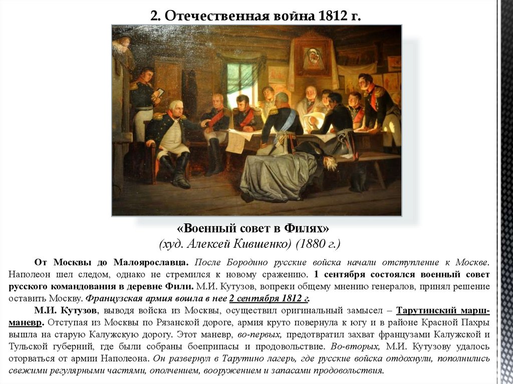 2. Отечественная война 1812 г.«Военный совет в Филях»