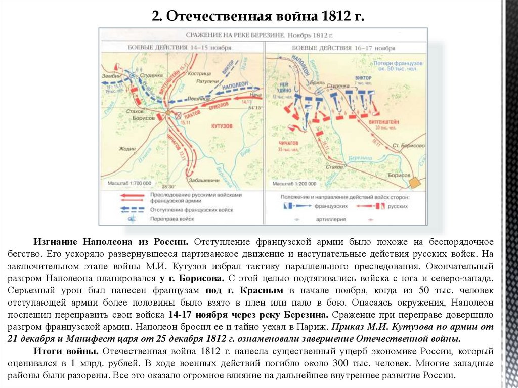 2. Отечественная война 1812 г.Изгнание Наполеона из России. Отступление французской армии было похоже на беспорядочное