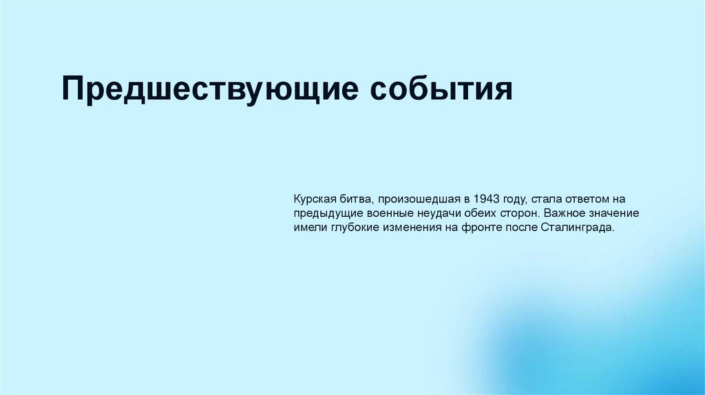 Предшествующие событияКурская битва, произошедшая в 1943 году, стала ответом на