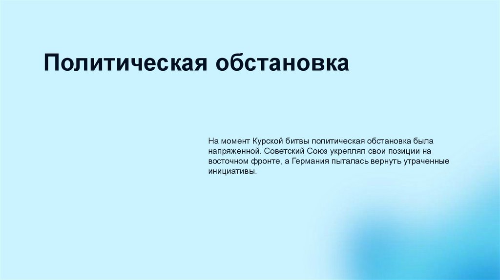 Политическая обстановкаНа момент Курской битвы политическая обстановка была