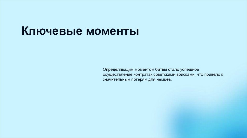 Ключевые моментыОпределяющим моментом битвы стало успешное