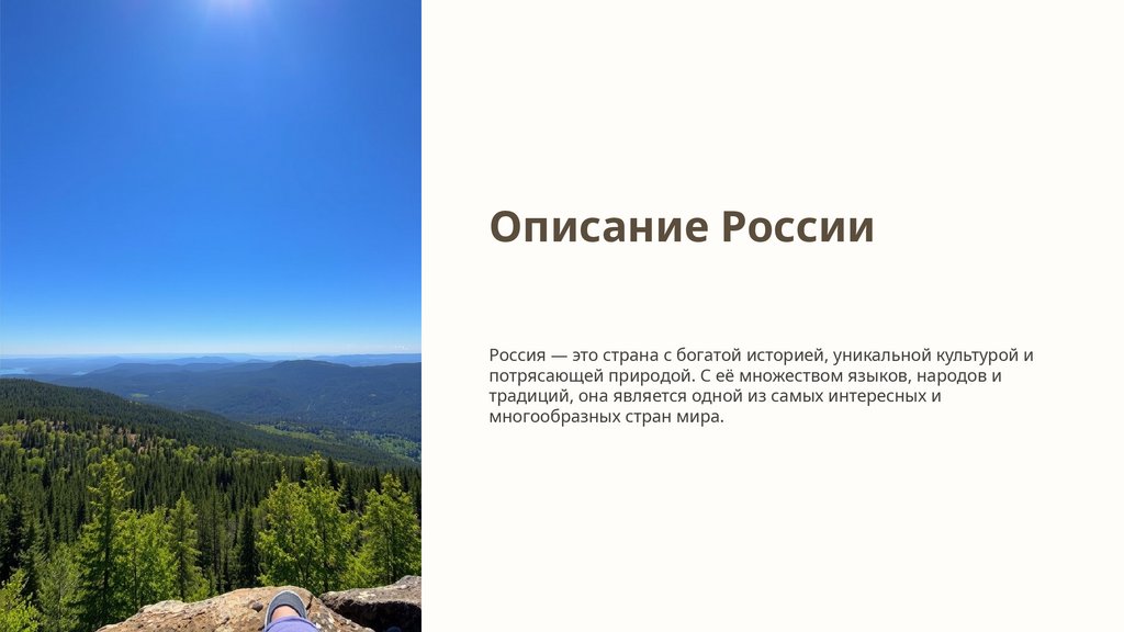 Описание РоссииРоссия — это страна с богатой историей, уникальной культурой и