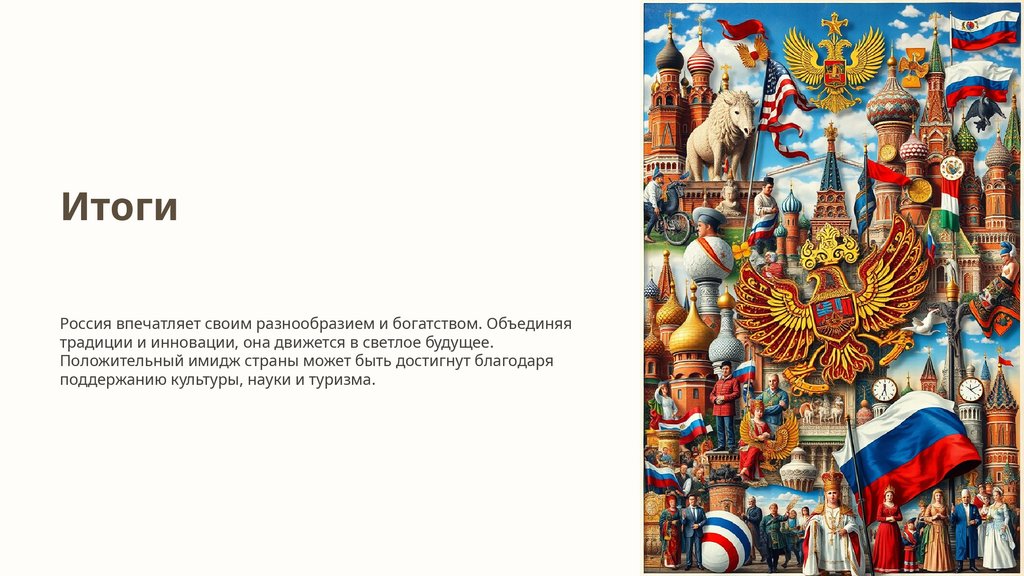 ИтогиРоссия впечатляет своим разнообразием и богатством. Объединяя