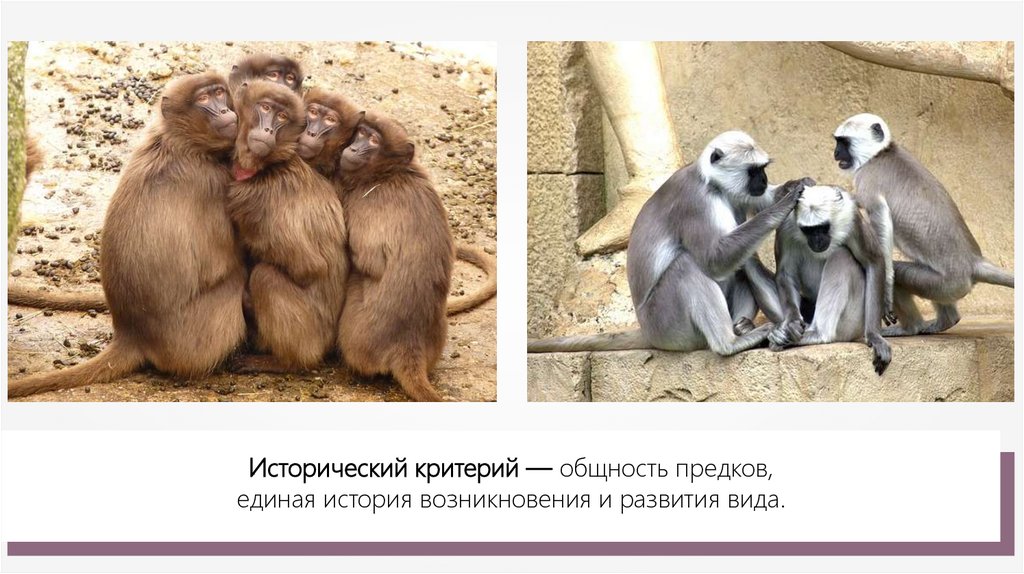 Исторический критерий — общность предков,единая история возникновения и развития вида.