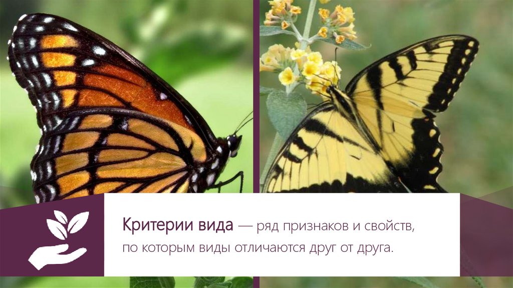 Критерии вида — ряд признаков и свойств,по которым виды отличаются друг от друга.