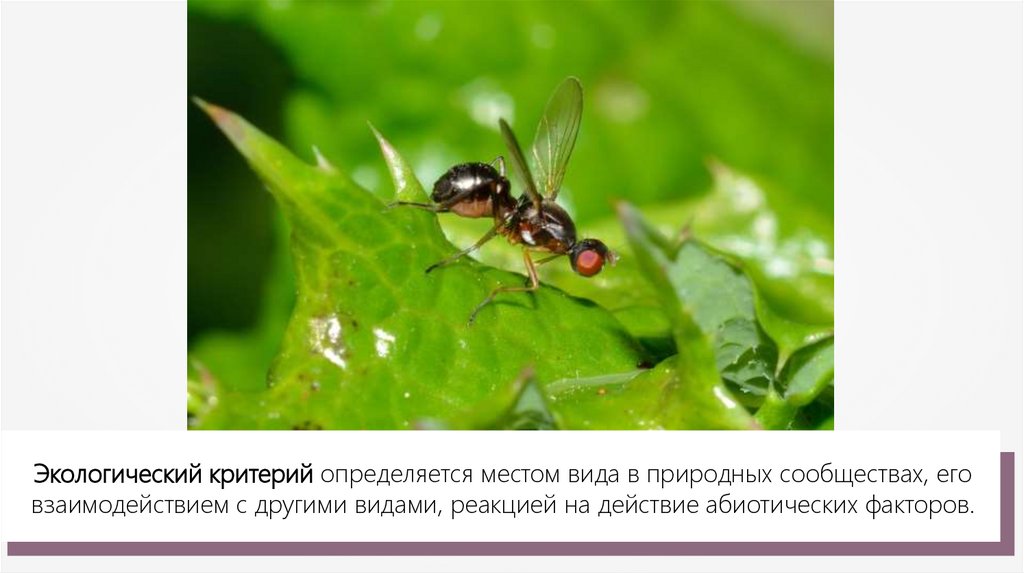 Экологический критерий определяется местом вида в природных сообществах, еговзаимодействием с другими видами, реакцией на действие абиотических факторов.