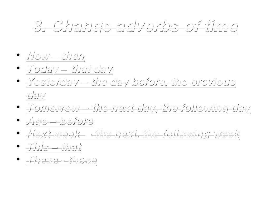 3. Change adverbs of time• Now – then