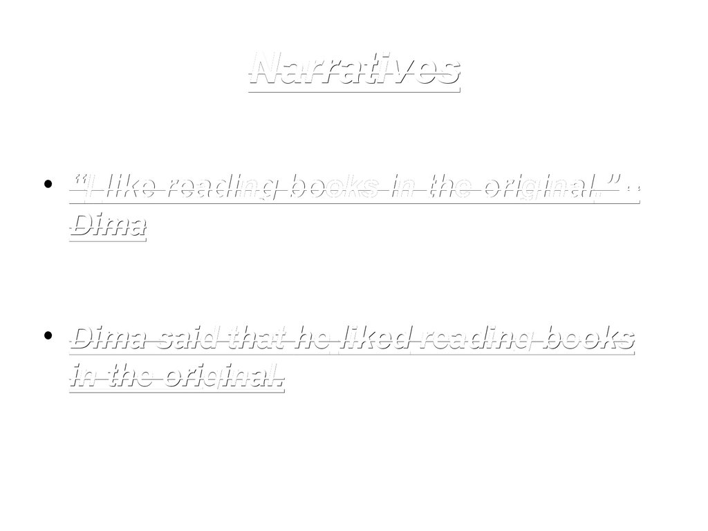 Narratives• “I like reading books in the original.”-original.”-Dima