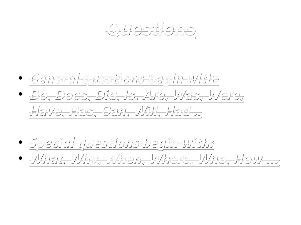 Questions• General questions begin with: