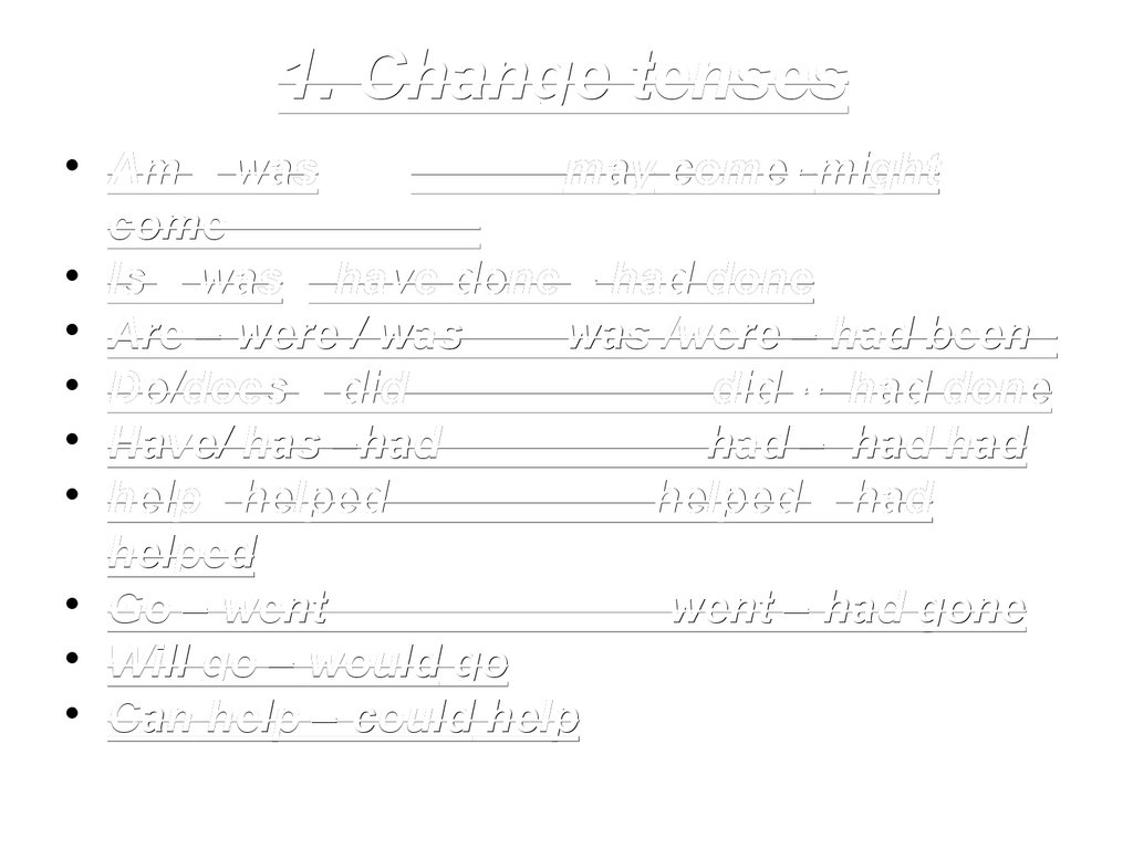 1. Change tenses• Am – was
