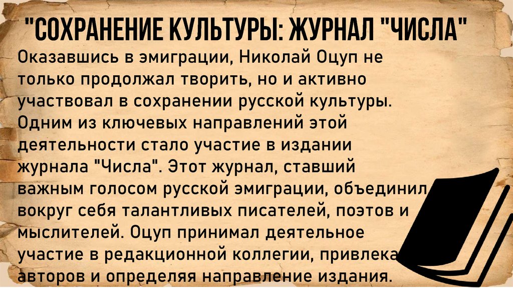 культуры в эмиграции. Благодаря его работе в