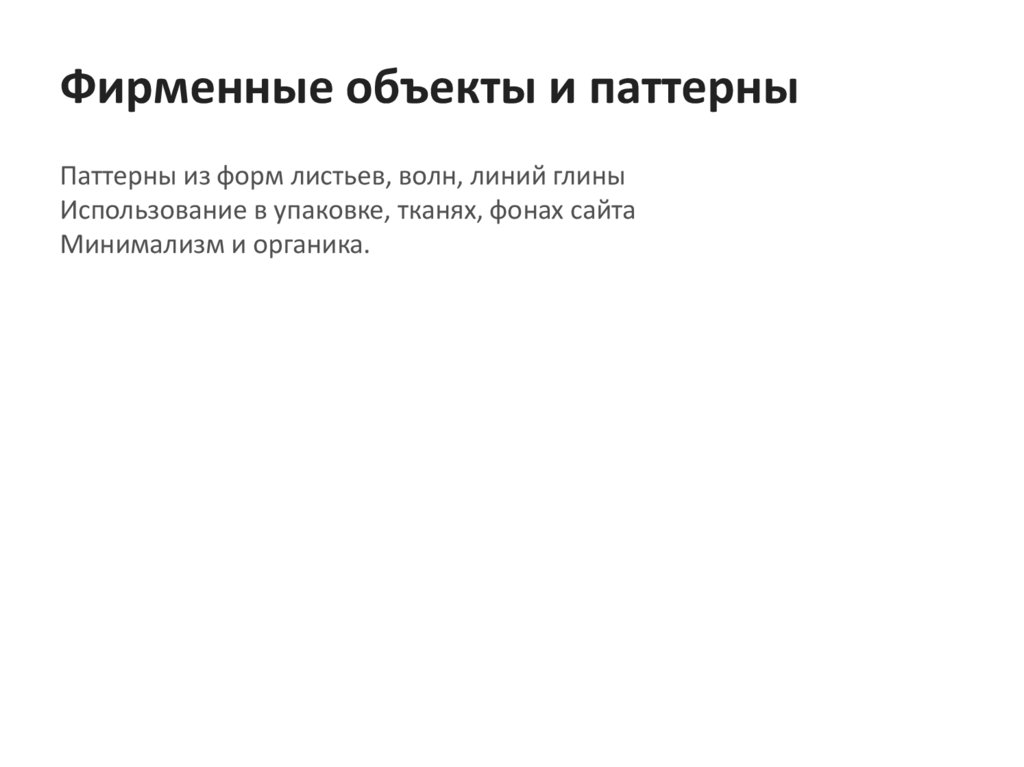 Фирменные объекты и паттерныПаттерны из форм листьев, волн, линий глины