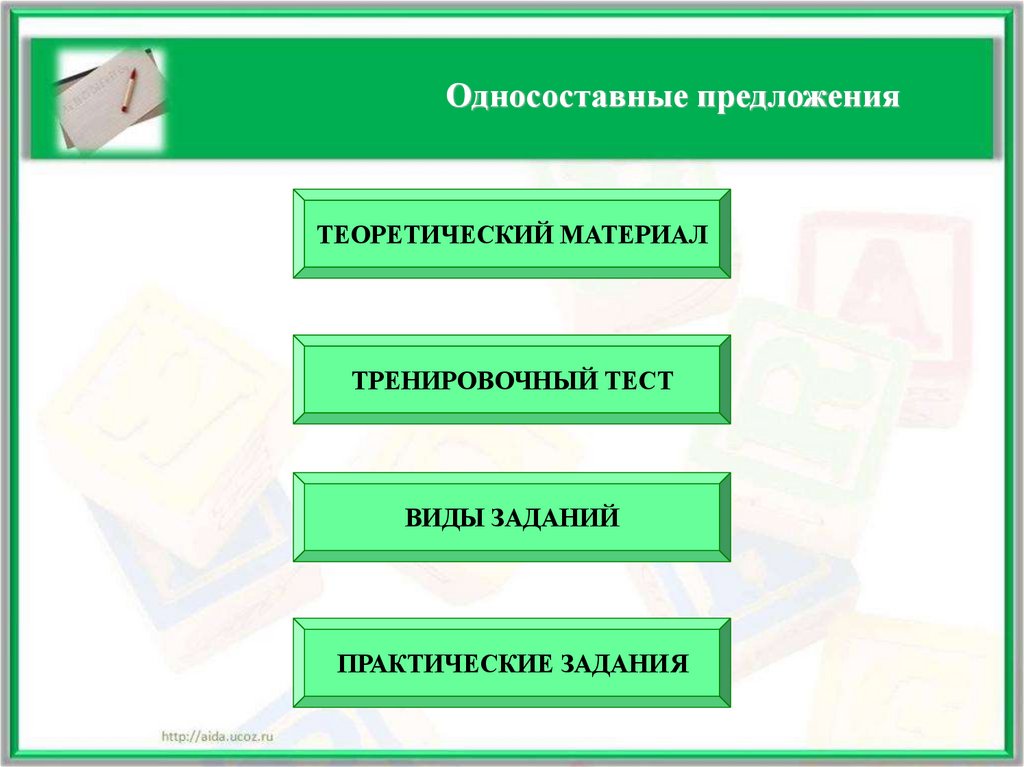 Односоставные предложенияТЕОРЕТИЧЕСКИЙ МАТЕРИАЛ