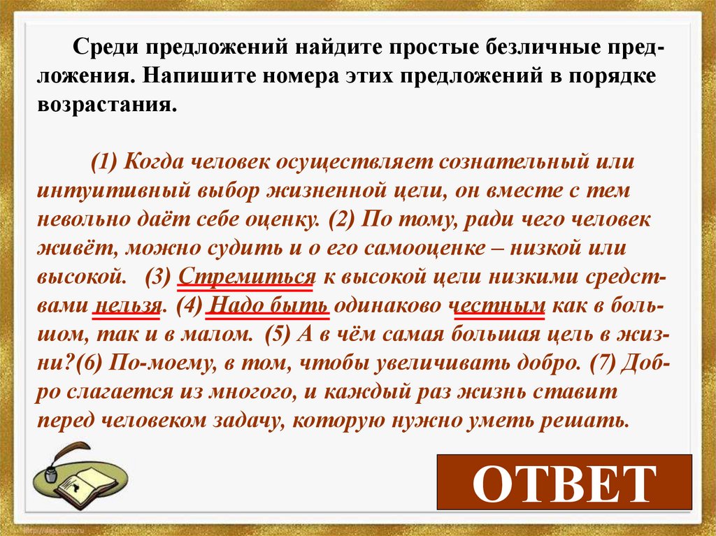 Среди предложений найдите простые безличные предложения. Напишите номера этих предложений в порядкевозрастания.