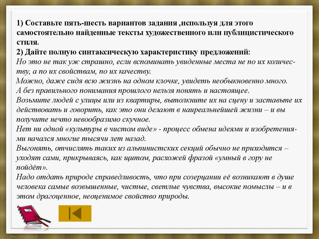 1) Составьте пять-шесть вариантов задания ,используя для этогосамостоятельно найденные тексты художественного или публицистического