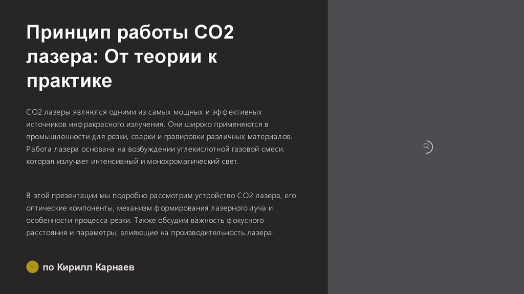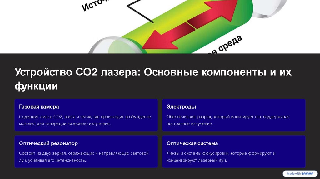 В этой презентации мы подробно рассмотрим устройство CO2 лазера, его