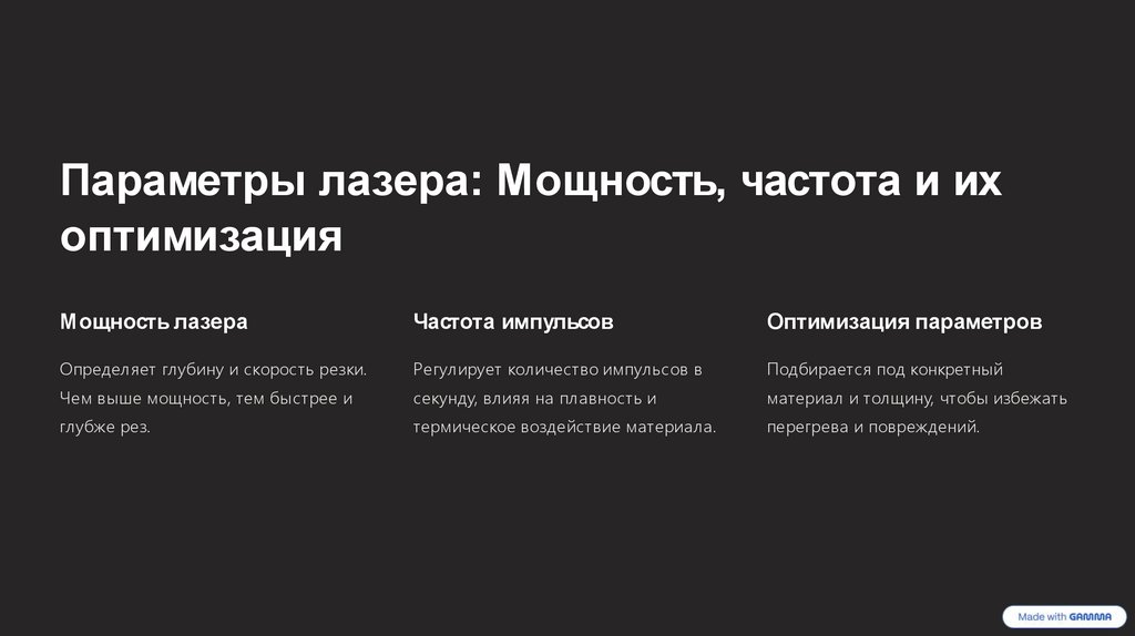 Параметры лазера: Мощность, частота и ихоптимизация