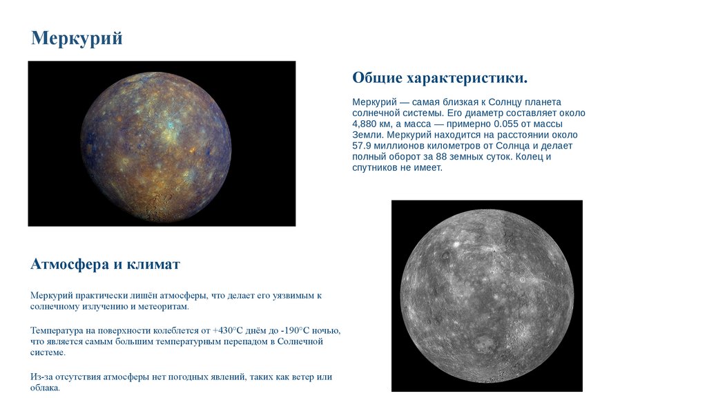 Меркурий практически лишён атмосферы, что делает его уязвимым к