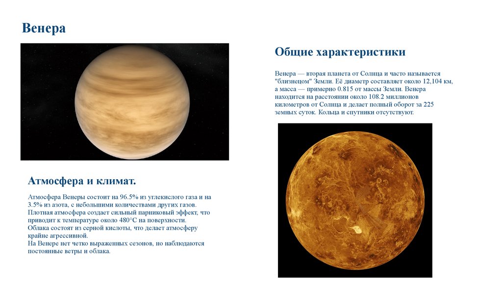 Атмосфера Венеры состоит на 96.5% из углекислого газа и на
