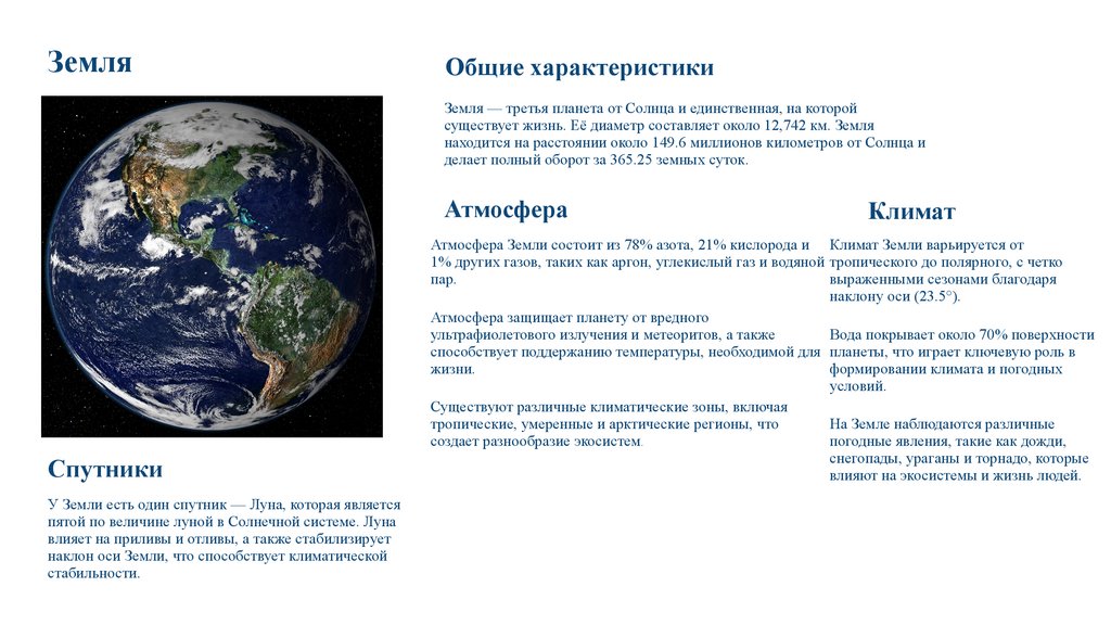 Атмосфера Земли состоит из 78% азота, 21% кислорода и Климат Земли варьируется от