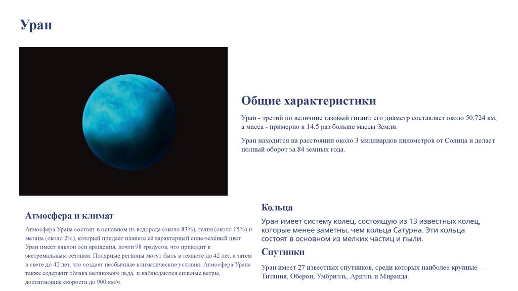 в свете до 42 лет, что создаёт необычные климатические условия. Атмосфера Урана