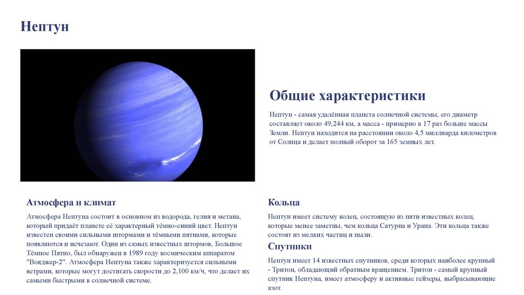 который придаёт планете её характерный тёмно-синий цвет. Нептун