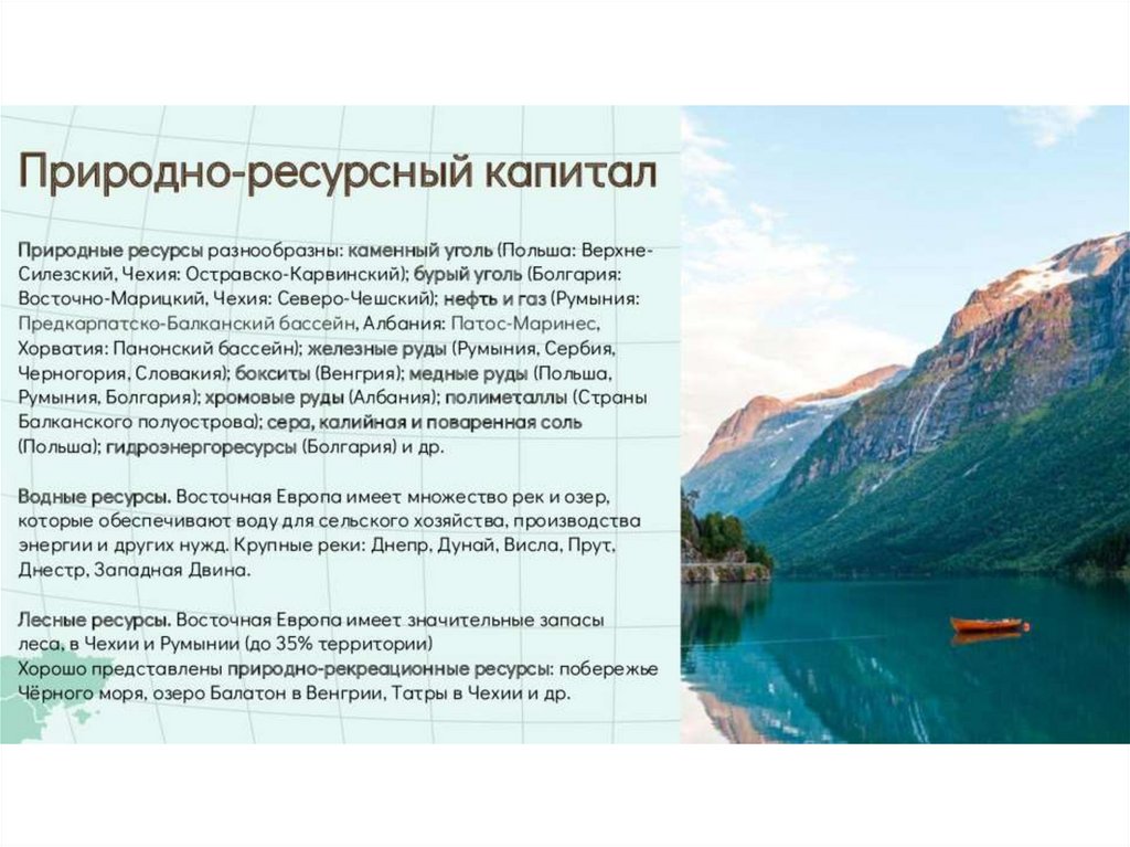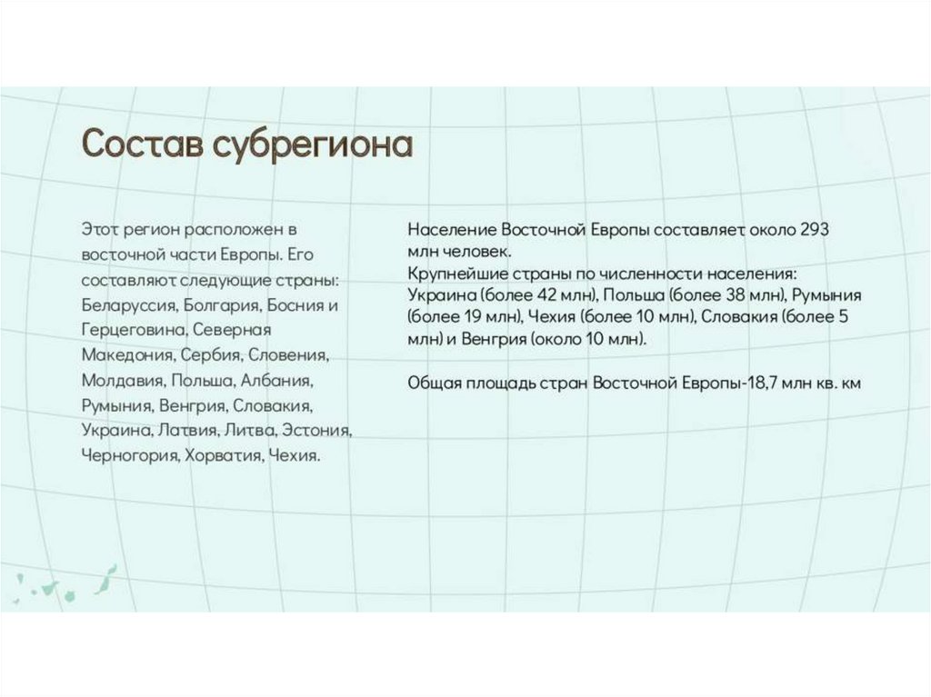 Восточная Европа. Общие черты и особенности природно-ресурсного капитала, населения и хозяйства стран субрегиона