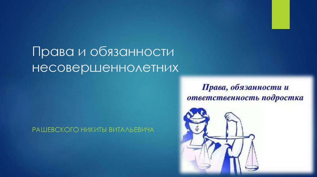 РАШЕВСКОГО НИКИТЫ ВИТАЛЬЕВИЧА2. Права и обязанности несовершеннолетних: * право на жизнь и здоровье; * право на образование; * право на свободу и