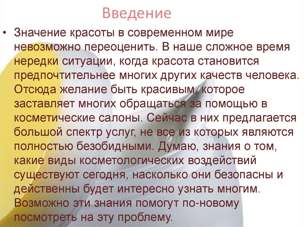 • Значение красоты в современном миреневозможно переоценить. В наше сложное время