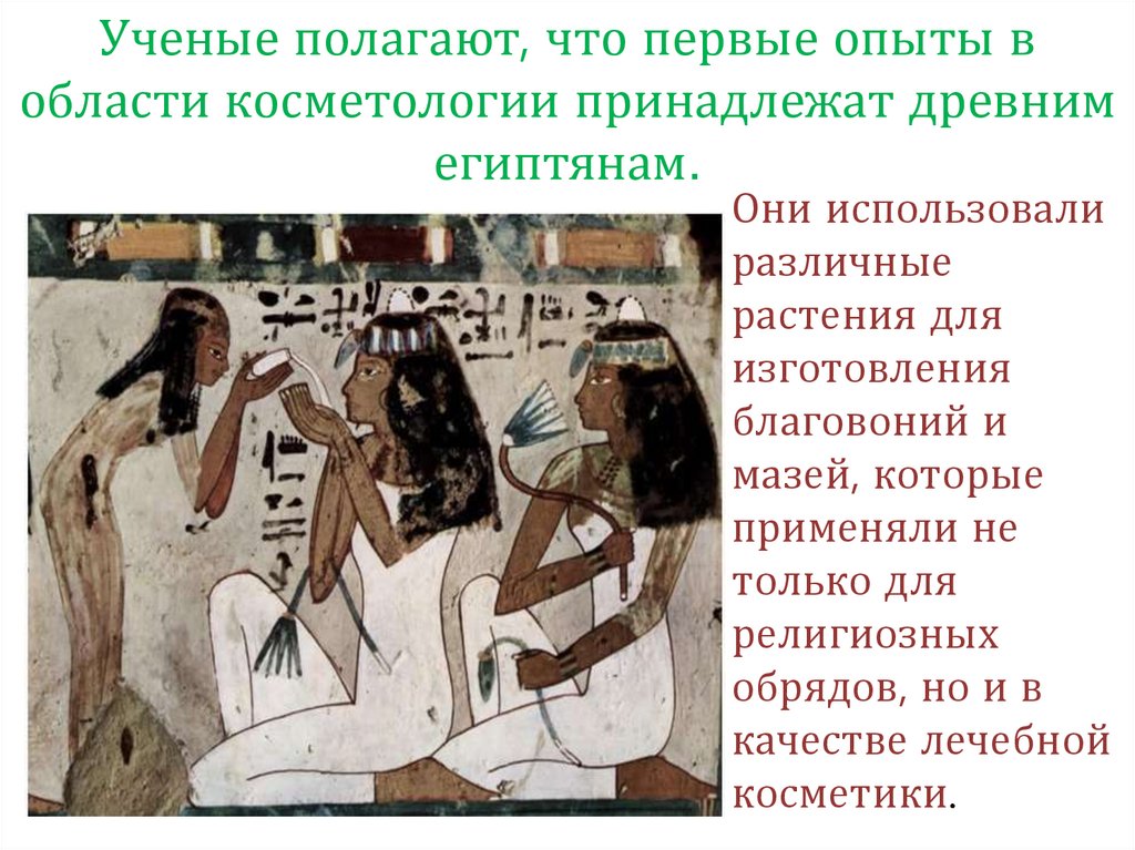 Ученые полагают, что первые опыты вобласти косметологии принадлежат древним
